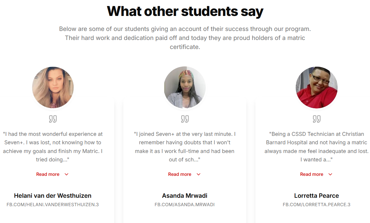 Sevenplus is an online based adult education program that boasts a successful track-record of more than a decade. Full details of how to enroll and everything else you need to know about it can be found at www.sevenplus.co.za